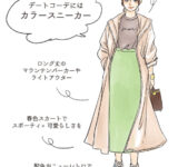 デートや女子会に…! 「人気スニーカー」のシーン別トレンド春コーデ – イラスト・角佑宇子 | ananweb – マガジンハウス